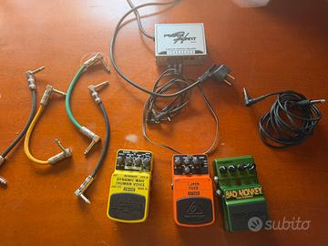 Vendo kit completo per chitarra elettrica, ideale per iniziare subito a suonare senza dover acquistare altro. Il pacchetto comprende: •Chitarra elettrica Ibanez GIO GAX30 (ottime condizioni, appena pulita e igienizzata. •Pedale overdrive DigiTech Bad Monkey •Pedale fuzz Behringer SF300 •Pedale wah Behringer DW400 •Alimentatore multiplo per pedali •Cavi jack (vari, come da foto) •Tracolla in cuoio •Supporto da terra per chitarra •Custodia morbida La chitarra è senza corde (rimosse perché vecchie), quindi va solo montato un set nuovo per suonare. Tutto perfettamente funzionante. Vendo per inutilizzo. Prezzo leggermente trattabile, ma vendo preferibilmente in blocco. Consegna: Disponibile per ritiro a mano a Palermo. Contatti: Scrivere su Subito o WhatsApp.