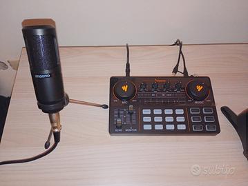 Maono Maonocaster LT AU-AM200-S1 La soluzione completa per l'elaborazione audio che integra la raccolta del segnale audio, l'elaborazione e il controllo dell'uscita audio. È compatibile con smartphone, tablet e computer, inclusi Android, iOS, Windows e MacOS. È plug-and-play senza bisogno di driver aggiuntivi. Il processore audio digitale DSP integrato consente di variare la tua voce e aggiungere più effetti sonori al tuo podcast con un solo pulsante rendendo il live streaming più divertente. MAONOCASTER LT AU-AM200-S1 è un ottimo strumento per realizzare podcast, programmi radiofonici, ecc. Intuitivo e facile da usare così da poter entrare nel podcasting in pochissimo tempo fornendo ottimi contenuti e interagendo con gli ascoltatori con operazioni immediate e semplici. Caratteristiche: Compatibile con smartphone, tablet e computer Interfaccia intuitiva e facile da usare Effetti sonori multipli Monitoraggio delle cuffie in tempo reale con ascolto e registrazione simultanei Supporta due ingressi per microfono contemporaneamente Cancellazione del rumore e suoni ambientali Funzione side chain per evidenziare la voce umana abbassando automaticamente il volume della musica di sottofondo Controlli separati del volume del microfono e dell'accompagnamento Ingresso accompagnamento indipendente Uscita trasmissione live a tre vie per trasmissione live su multi-piattaforma Interfaccia USB-C per alimentazione e dati Batteria al Litio integrata per un utilizzo fino a 8 ore Trasmissione dati: USB-C Risposta in frequenza: 20Hz – 20kHz THD: THD<0.5% 1kHz Potenza di uscita della cuffia: 20mW, 32 Ohm (1kHz, THD+N=1%) Frequenza di campionamento: 48kHz/16-bit Connessione wireless: Bluetooth 4.2 Batteria: Litio Capacità batteria: 1200mAh Parametri di carica: 5V/1A Tempo di ricarica: Circa 3 ore Durata della batteria: Circa 8 ore (massima luminosità dei pulsanti) Dimensioni: 240 x H42 x 140mm