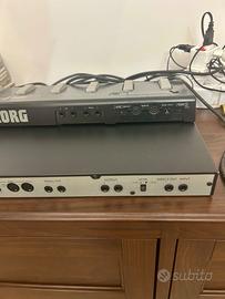KORG A 3 processore digitale per chitarra elettrica, con pedaliera per controllo remoto e slot per cards suoni. Completamente programmabile, consente di concatenare suoni ed effetti vintage e non, e di controllarli con la pedaliera per usarlo sul palco. Adoperato negli anni 70-80 da molti chitarristi, tra cui Steve Hackett dei Genesis, quando ancora le attuali pedaliere multieffetto non esistevano. Unisce la praticità e la varietà di suoni ed effetti al sound eccellente dei pedali single effect, che soprattutto Live erano un po’ rumorosi e complicati da collegare. Un Rack molto professionale per chi vuole emulare e riprodurre i suoni vintage e crearne di nuovi, personalizzandoli per l’utilizzo desiderato. Completo di Manuale d’Uso in italiano e dei cavi originali. No permute.