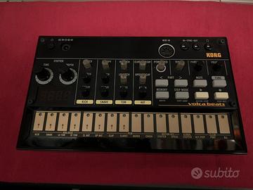 Drum machine Volca Beats in perfetto stato, incluso decksaver, molto utile sia per trasportarlo che per proteggere i delicati potenziometri da botte e polvere. No scatola o alimentatore, ma includo adattatore MyVolts per usarlo con un comune alimentatore 9v.