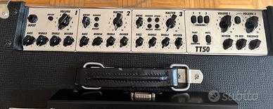 Stupendo 50 W valvolare “made in UK”, tre canali indipendenti (clean, crunch, drive) con controlli volume, toni, reverbero e modalità tipo suono (vedi foto). Doppio volume generale master 1 e master 2, footswitch FS6 originale con cavo lungo per cambiare i diversi canali, selezionare reverbero e volume master (1 o 2). Coni Celestion CL80. Condizioni estetiche e funzionali ottime: usato pochissimo, vendo causa inutilizzo.