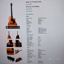 Vendesi chitarra acustica amplificata Larrivee LV-10 made in Usa del 2003, numero seriale 10-68560.