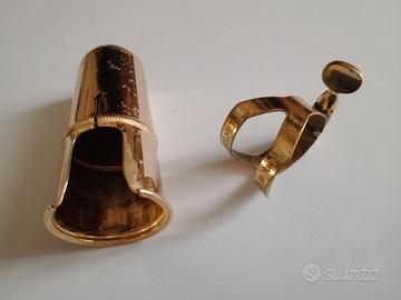 Morsetto Fascetta Selmer e cup Lucien per Sassofono soprano. - Materiale metallico dorato. - Incisione MADE IN FRANCE.
