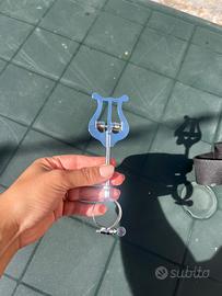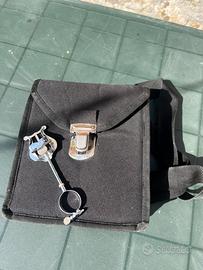 Leggio lettera A scritta come segnk di riconoscimento. Borsello porta libretti musicali e porta spartito che usavo da attaccare al clarinetto mentre suonavo nelle processioni