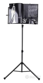 Il leggio portatile Mugig, completo di custodia per il trasporto, è leggero e pieghevole. La base a treppiede è antiscivolo e offre maggiore stabilità. L'altezza è regolabile da 35 a 152 cm, consentendo un utilizzo confortevole sia in piedi che seduti. Anche l'angolo di visione può essere regolato di 180 gradi. Le clip laterali assicurano che lo spartito rimanga aperto alla pagina corretta.