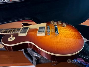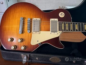 Vendo copia Les Paul colore Bourbon Burst acquistata per non condividere la mia durante un tour con altra band USA un anno fa. Monta due humbucker Gibson 57 Classic originali, wiring rifatto, meccaniche grover originali provenienti dalla mia Standard alla quale ho montato delle Gibson Deluxe tulipano. Top fiammato vero non photoflame, corpo in mogano tastiera in palissandro ponte originale Gibson. Vendo compresa custodia. Su richiesta posso fornire foto attestanti originalita dei due humbucker. Possibilità di provarla presso la mia sala prove