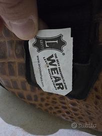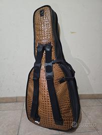 Vendo, come da annuncio, questa fantastica custodia per chitarra levy’s leather. Finitura “crocodile”, un vero pezzo da collezione visto che la fabbrica è stata discontinua nella sua produzione. • Protezione: Interno imbottito con schiuma spessa circa 2,5 cm (1 pollice) e rivestimento in pile nero. • Design: Finitura marrone chiaro (tan) con dettagli neri e ampie tasche esterne in stile "saddle-bag" per accessori come cavi, spartiti o piccoli tablet. • Trasporto: Dotata di maniglie robuste e spallacci regolabili per il trasporto a zaino Costi eventuali di spedizione a carico dell’acquirente.
