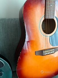 Vendo tutte le mie chitarre per fare un upgrade alla tod10n - Epiphone Les Paul Junior - Squier by Fender Bullet Strat - Chitarra acustica jumbo della Asahi - Copia della Ovation marchiata Thema La Les Paul non era messa benissimo, ho cercato di sistemarla con dello smalto a base di nitrocellulosa donandogli questo bell’effetto verde metallico. Le meccaniche non sono originali. La asahi è una bel chitarrone jumbo con un suono bello pieno. È rovinata agli angoli. La Squier ha bisogno di una bella lucidata, per il resto tutto in ordine. La Thema è una chitarra miracolata, caduta e spaccata dal precedente proprietario, un liutaio è riuscita a recuperarla.