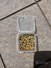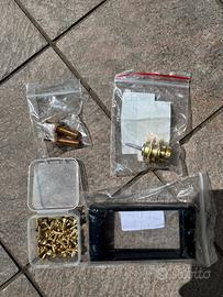 Vendo in lotto per smontata chitarra. Pickup guard in plastica neri, sellette tune o bridge Oro, 40 viti per battipenna colore Oro e uno regalo strap lock. Spedisco il tutto.