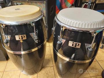 Conga 11,75 Tumba 12,5 e Quinto 11 Latin Percussion "original model" fiberglass nere ( hanno dentro rinforzo in KEVLAR anti deformazione come le galaxy fiberglass ) hanno pochi graffi sembrano grossomodo nuove , le pelli naturali sono perfette pochissimo allungate senza segni , ammorbidite con burro di karite naturale che mi portava un amico africano , meglio che nuove VI CI VORREBBERO 15 ANNI DI CURE PER AVERE DELLE PELLI COSI !