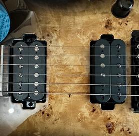 La chitarra ha un suono spettacolare, grazie ai seymour duncan splittabili, é comoda grazie ad un ottimo lavoro di produzione e di liuteria e anche molto bella esteticamente, con la radica di pioppo a coprire il body in mogano e con una verniciatura natural sunburst.