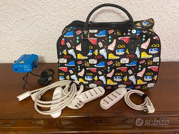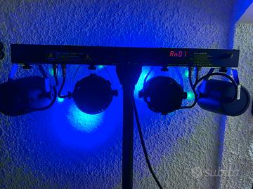 Luci DJ light Ibiza+stativo per luci PARRGBB e 2 Moon fower RGBBBA pacchetto Led 4 in 1( con telecomando) compreso di borsa per lo stativo e una per le luci. 1 microfono Tonor dinamico con cavo XLR da 5 metri.1 laser con treppiede con luce verde.1 borsa con 3 ciabatte nuove e 2 cavi+ 3 cavi rca.1 paio di cuffie. Tutta l’attrezzatura è stata usata una decina di volte, praticamente nuova.