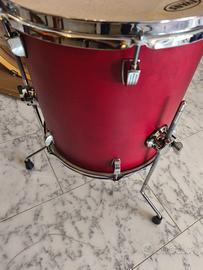 Batteria versatile versione curata esteticamente fusti in betulla (8 strati 8 mm di spessore) cassa 22x18--10 tiranti tom 10x10 tom 12x10 timpano 14x14 rullante 14x5 10 tiranti, unico problemino alcune plastiche del blocchetti contro il rivestimento sono un po' rotte ma comunque ci sono e non compromettono il rivestimento.