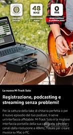Vendo per inutilizzo, come nuova, interfaccia audio M-Audio M-Track Solo. Ottimo rapporto qualità-prezzo, ideale per registrare la voce o uno strumento.