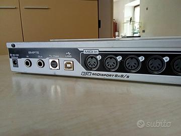 Vendo interfaccia MIDI M-Audio MIDISPORT 8x8/s USB, uno strumento essenziale per qualsiasi studio di registrazione o setup live che necessiti di gestire un elevato numero di dispositivi MIDI.