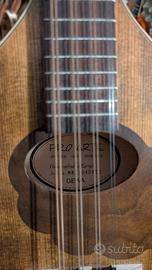 Mandola flat interamente in legno massello con top in abete, fondo e fasce in acero. Ha una paletta scanalata e meccaniche Van Gent con manopole in acrilico.