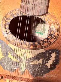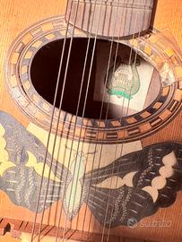 Vendo eccezionale mandolino a goccia rappresenta un vero gioiello della tradizione musicale siciliana, realizzato dalla prestigiosa liuteria D'Angelo di Catania con etichetta originale all'interno. Lo strumento si distingue immediatamente per la raffinata maestria artigianale, evidenziata dal magnifico intarsio a forma di farfalla che decora il piano armonico proprio sotto la buca ovale. All'interno della cassa è chiaramente visibile l'etichetta originale d'epoca che ne garantisce l'autenticità e la provenienza dalla storica scuola catanese, famosa in tutto il mondo per la qualità dei suoi strumenti a corda. Nonostante i segni naturali del tempo che ne testimoniano la lunga storia, il mandolino mantiene intatte le sue componenti principali, incluse le otto corde e le meccaniche originali sulla paletta scura. Disponbiile la spedizione o ritiro di persona. 63x21x15 cm