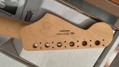 FENDER presenta MANICO FENDER PLAYER STRATO NECK W/BLOCK INLAYS, 22 MEDIUM JUMBO FRETS, PAU FERRO 0994553921Aggiungi un tocco di stile alla tua chitarra con un manico della serie Player con intarsi a blocchi. Per una suonabilità moderna con un'atmosfera di ritorno al passato, questi manici hanno tutte le caratteristiche degli strumenti della serie Players ma con intarsi a blocchi che li fanno risaltare in mezzo alla folla. I manici di ricambio Fender sono realizzati presso gli stabilimenti di produzione Fender con le stesse specifiche di quelli utilizzati sui nostri strumenti. Questo manico Stratocaster di fabbricazione messicana di Ensenada presenta una tastiera in acero con intarsi a blocchi neri, un raggio di 9,5" e 22 tasti medium jumbo. Il manico in acero ha un comodo profilo del manico Modern C che è comodo per quasi tutti gli stili di gioco. Il capotasto in osso sintetico è pre-intaglio con scanalature di posizione della corda "pilota" per rendere la spaziatura un gioco da ragazzi quando si esegue l'archiviazione finale della fessura della corda. Per la vera autenticità Fender, è anche serializzato e timbrato, con decalcomania del logo degli spaghetti della paletta genuina. Questo manico di ricambio è per una chitarra Fender o Squier® by Fender. Poiché i manici di ricambio originali Fender non sono stati montati sui corpi delle chitarre, le scanalature dei dadi devono essere tagliate da personale qualificato. Potrebbero essere necessari altri processi di installazione, come il lavoro di traforo, l'adattamento del manicoo alla tasca del manicoo e altre procedure di configurazione dello strumento. Il tuo centro di assistenza autorizzato FMIC locale può installare manici di ricambio originali; trova i centri di assistenza autorizzati vicino a te nella sezione "Supporto" di fender.com.