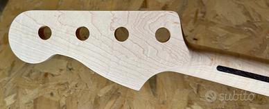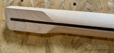 Manico per Jazz Bass di Liuteria (misure per American standard, Japan, Mex etc), costruzione pezzo unico di Canadian hard maple, scala 34", radius 9,5", 20 tasti in acciaio medium jumbo, trussrod double action con regolazione Philips sul tacco, da verniciare.