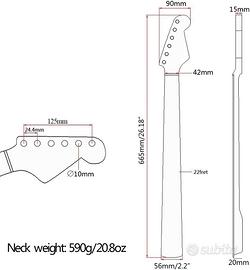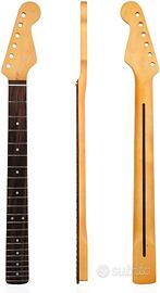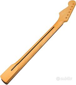 Manico per Chitarra elettrica Stratocaster style NO FENDER, NO SQUIER in Acero; Manico per Chitarra elettrica, pezzo di Ricambio, con Tastiera in Acero a 22 Tasti per la Sostituzione di Parti. Con truss rod; Per Fai da Te. NUOVO, errato acquisto.