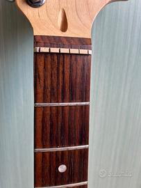 Vendo bellissimo manico di una Squier Stratocaster affinity del 2008, anni di produzione con legni ottimi anche se costruzione e assemblaggio venivano fatti in Cina. Manico in acero profilo C standard con una bellissima tastiera in palissandro con radius 9,5. Le meccaniche come si può vedere non sono tutte originali perchè qualcuna si è rotta e sono state sostituite con altre meccaniche adattabili. Nonostante ciò tiene benissimo l’accordatura. Tasti con qualche piccolo solco ma in generale in buono stato, ancora suonabili per molto.