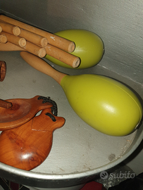 4 strumenti musicali in legno maracas nacchere xilofono cracra