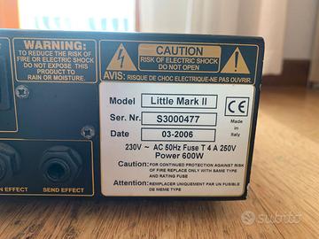 Vendo Testata Markbass Little Mark II usata con segni di normale usura ma perfettamente funzionante. Disponibile per qualsiasi prova. Consegna a mano