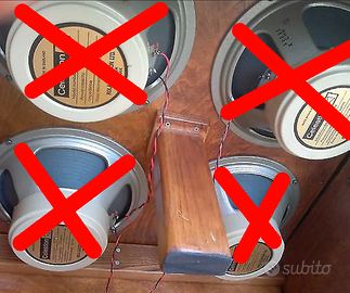 Cassa Marshall 4x12 1960B basketweave customizzata J.H.EXP. tipo quelle di Hendrix a Woodstock Negli anni passati ste casse suonarono ai Saturnia Festival Una è stata venduta ed anche i coni dell'altra. Me n'è rimasta solo una , SENZA altoparlanti, come in foto. Volendo ho un Fane del 72 non funzionante che posso includere nel prezzo a chi non chieda sconti . NON CREDO DI POTERLA SPEDIRE PREFERIBILE IL RITIRO IN ZONA TEL.3716299837