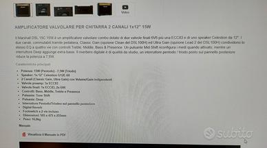 Ampli combo valvolare Marshall, ottime condizioni usato solamente in casa. 15 watt valvolari . prezzo leggermente trattabile, vendo per cambio strumentazione. solo scambio a mano su Roma.
