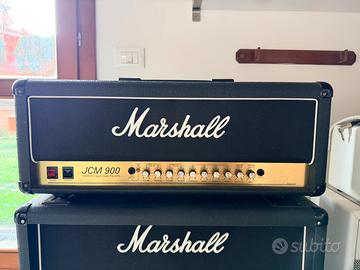 Marshall JCM 900 4100 100W + Cab 1936 JCM 900 Lead in ottime condizioni. Tutte le parti sono originali e in ottimo stato. Monta come valvole finali EL 34 EH made in Russia. Il cabinet è in ottime condizioni. Lo stack è stato usato a casa a volume sempre basso. Altre immagini disponibili per chi è veramente interessato. Preferisco consegnare a mano, ma eventualmente disponibile alla spedizione (da accordare in base al luogo di consegna). No perditempo.