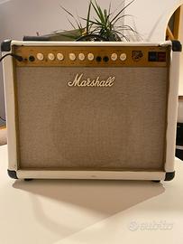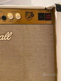 Vendo splendido Marshall JTM30 (versione 1x12 con cono Celestion) per esubero strumentazione. L'amplificatore è stato personalizzato con un rivestimento in pelle bianca che gli dona un look unico e molto elegante sul palco (lavoro fatto a mano, segnalo qualche imperfezione estetica negli angoli, visibile in foto). Il suono è il classico timbro British caldo e cremoso, perfetto per Blues e Rock. L'elettronica è originale e non ha subito modifiche. Come tipico di questo modello, tende a scaldare durante l'uso prolungato, ma funziona perfettamente. Disponibile per qualsiasi prova a casa mia. Preferisco lo scambio a mano viste le valvole e il peso. Prezzo poco trattabile