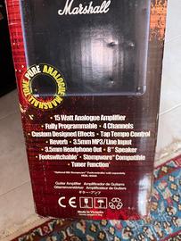Vendo amplificatore per chitarra elettrica Marshall 15 watt transistor con effetti inclusi, usato pochissimo e sempre in camera, mai uscito da casa. In ottime condizioni, vendo a malincuore solo per passaggio ad altro ampli piu costoso.