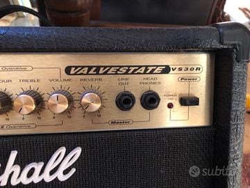 Il Marshall Valvestate VS30R è un amplificatore combo da 30 watt con cono Celestion Marshall Gold da 10 pollici, che emula il suono valvolare.