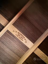 Aggiunta di pick up interno con volume regolabile dal valore di 400€ per poterla utilizzare anche amplificata. Il pick io è stato aggiunto da liutaio di Milano (Jacaranda, storico liutaio di Jovanotti, Saturnino ecc) all’interno della cassa proprio per non rovinare la scocca originale e quindi incidere sul suono. Molte Martin amplificate hanno il piezzo inserito al lato della scocca. Questo comporta una perdita di valore per la chitarra perchè questa chitarra è stata concepita origariamente senza. Con il pick up interno invece la chitarra mantiene la sua forma originale e di conseguenza anche il suo suono. Dettaglio fondamentale che vi consiglio di considerare in fase di aquisto visto che stiamo parlando di tanti soldi.