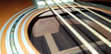 Per sfoltimento collezione chitarre e a malincuore do via la mia Martin D42 del 2010 comprata tanti anni fa dal Giappone circuito negozi di lusso, per chi ancora non lo sapesse i Giapponesi si fanno fare le chitarre dalla Martin in un certo modo, questa D42 ha il tap tuning, costruita al millesimo, angolazione del manico perfetta infatti dopo tutti questi anni non si è mai mossa e l'osso del ponte è molto alto, action ultra bassa 2,3mm al mi basso e 1,9 mm al cantino al 12° tasto, corde 12-54. Avevo installato un Carlos CP-1A Vip del valore di 500 euro, documentatevi chi è Carlos Pickup e a chi installa i pick up da tantissimi anni da Eric Clapton a Mark Knopfler ecc.. Ha una verniciatura molto sottile come le storiche e pregiate Martin di una volta infatti la vernice nel top ha fatto il classico effetto vintage come le storiche Martin dei più grandi al mondo. Risuona in una maniera incredibile sia in acustico con un suono spaziale che amplificata con un suono stellare e bilanciato su ogni corda. L'ho suonata veramente pochissimo quindi è nuova di zecca ma invecchiata dal tempo infatti profuma ancora di nuovo. Compresa di tutti i suoi documenti e custodia originali. Sarebbe preferibile una consegna a mano così la potete vedere e provare di persona visto il suo prezzo, in caso di spedizione farò un pacco perfetto al millesimo ma non mi assumo nessuna responsabilità in caso di danni causati dai corrieri e non accetto reso in nessun modo, pagamento anticipato con bonifico bancario tracciabile, come vedo l'accredito parte il pacco, Spedizione GRATIS. La vendo per €5500 euro così come si trova ora amplificata o €5000 senza il sistema di amplificazione. Invio foto di ogni angolo dello strumento e video clip per sentire il suono solo se realmente interessati a finalizzare. Niente perditempo ne collezionisti di foto grazie. Non sono interessato a scambi solo vendita. Per qualsiasi info scrivetemi pure...