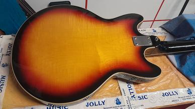 Rara chitarra semiacustica Meazzi Spitfire anni 60 made in Italy. Revisione e setup effettuati da liutaio, ottimo suono e suonabilità. Presenta qualche piccolo segno del tempo e dell'uso sulla vernice.