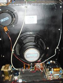 Vendo mitico amplificatore per chitarra Emmethree "Studio 50" (ex meazzi) maniacalmente restaurato, equipaggiato con woofer da 25" IRVING e midlerange RCF MR45A. Doppio stadio finale a transistor darlington in controfase configurato a ponte. Controllo del volume, bassi e tremolo, ingressi per chitarra e basso e pedale "stop tremolo" , potenza di uscita 50W.
