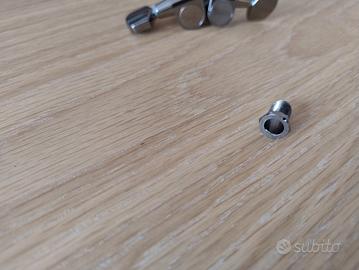 Meccaniche Taylor Smoked Nickel. Vendo con prezzo scontato perché un perno (non le meccaniche) è arrivato leggermente scheggiato, come da foto, ma la funzionalità non è minimamente compromessa.