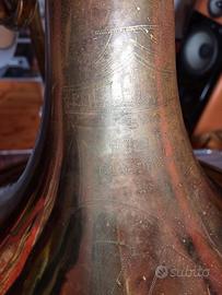 MELLOPHONE FRANK HOLTON COLLEGIATE PRODUZIONE ELKHORN WISCONSIN USA, INTONAZIONE "FA" E "MIb" , LEADPIPE DA CORNETTA, s.n. 341000, CANNEGGIO L 0,466, PISTONI PERFETTI IN ACCIAIO, OTTIMA INTONAZIONE E TIMBRO, CAMPANA CM. 28, CASE ORIGINALE IN LEGNO (PERFETTAMENTE PULITO, PERFETTO UTILIZZO).