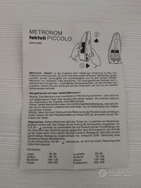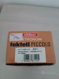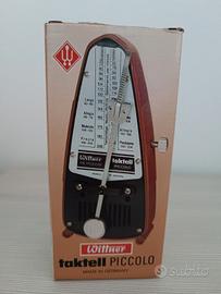 Vendo metronomo meccanico Wittner Taktell Piccolo originale “Made in W-Germany” Funzionante al 100%, mantiene il tempo perfetto da 40 a 208 BPM. Meccanismo a molla, nessuna pila necessaria. Suono classico Wittner. Il dispositivo è compatto, con dimensioni approssimative di 70 x 45 x 150 mm. Condizioni estetiche eccellenti, completo di scatola originale. La serie W-Germany è la più ricercata da musicisti per qualità costruttiva superiore. Ideale per pianoforte, violino, chitarra, batteria. Acquistato in negozio di articoli musicali con prezzo ancora su scatola originale