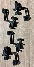 All’interno sono presenti le clamp per i microfoni D40 non quelle di serie ma quelle della Konig & Meyer (vedi foto).