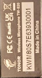 Microfoni wireless radiocomandati Tonor tw820 ancora in garanzia. Acquistati 110 euro completi di valigetta comprata a parte 20 euro.