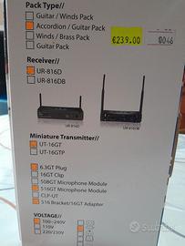 vendesi due microfoni wireless nuovi di marca JTS pagati euro 239 cadauno, vendo a 300 euro entrambi,non trattabili,provati solo in casa per provare la loro funzionalità,risultato eccellente, adatti per fisa,chitarra,sax ecc..vendo per esubero,vendo altri articoli musicali se interessati contatto tel.3489356245.