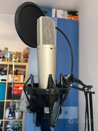 Vendo Donner DC-87 Microfono a Condensatore, Diaframma Largo da 25,4 mm, Microfono da Studio XLR semi-professionale , per registrare sia voce che strumenti con ottima qualità, con regolazione decibel e regolatore ampiezza di ricezione del condensatore, fornisco scatola originale con borsetta in pelle per traspprtarlo + anti pop originale in retina metallica, oltre quello in stoffa che fornisco con la staffa per scrivanie, vendo insieme a scheda audio scarlett solo di 3gen, anch essa dotata di tutto il packaging originale. Il tutto è stato usato pochissimo per un totale di non più di 20h di sessioni di registrazione, quindi tutto funzionante come da nuovo. In sintesi fornisco: microfono, antipop originale, asta completa di tutto + un altro antipop, scheda audio scarlett solo 3gen, cavo xlr, adattatori per i jack audio per renderli tutti compatibili, tutto in scatole originali nuove.