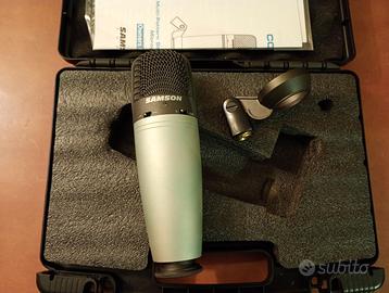 Vendo, in condizioni pari al nuovo e praticamente mai usato, microfono multipattern a condensatore Samson C03, con tutta la dotazione: valigetta, supporto e manualetto. Ha tre selettori per: -configurarlo come cardioide, omnidirezionale e bidirezionale (a otto); -attenuare lebasse frequenze; -attenuare di 10db.; richiede alimentazione phantom a +48V.