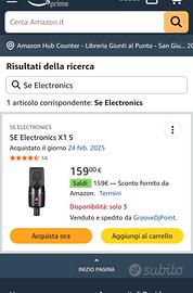 Vendo microfono a condensatore SE Electronics X1S, acquistato sei mesi fa usato tre volte in perfette condizioni come nuovo. Vendo causa inutilizzo. Prezzo trattabile no scambi strani. Possibilità di ritiro a mano in zona Milano e provincia o spedizione.