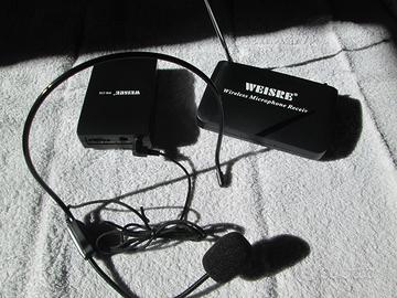 Ciao a tutti vendo per cessata attività a soli 20,00 euro Radiomicrofono con archetto e chip lavalier Wireless Weisre wm-238 Molto utile per divertirsi in feste, karaoke , ma anche per meeting, convegni, interviste, e anche per chi opera nel campo dello spettacolo, come cabarettisti, autori, cantanti, poiché è dotato di una clip da cintura per il trasmettitore portatile estremamente utile. Ottima funzionalità di lavoro per l’attraversamento tra 8 – 20 m distanza dal ricevitore. Caratteristiche Tecniche: LED di FUNZIONAMENTO Possibilità di regolare il volume frequenza di risposta: 100 hz-10000hz unidirezionale impedenza: 600 tensione di funzionamento: DC9 V o pile stilo E’ stato usato un paio di volte ed e’ perfettamente funzionante.