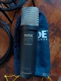 MICROFONO RODE NT71-5th NUOVO, MAI UTILIZZATO Vendo microfono condensatore cardioide a diaframma largo, completo di KIT e conservato in confezione originale. Il microfono ha capsula a condensatore HF6 da 1", uscita Dual Connect tramite USB e XLR, DSP Aphex integrato. Nel KIT sono compresi: -Filtro anti pop -Supporto antiurto -Cavo XLR e Cavo USB Acquistato nel 2025, nuovissimo, non è mai stato utilizzato in quanto possedevo già altro microfono.
