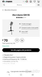 Microfono dinamico the t.bone GM55 Elvis Model, MAI usato pari al nuovo, con la sua valigetta, il suo treppiede, esattamente come in origine. Rimasto nel suo case e aperto solo oggi per fare le foto.