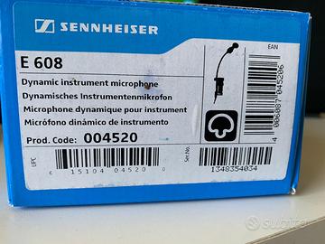 Microfono dinamico Sennheiser E608, ipercardioide, ideale per strumenti a fiato e strumenti a percussione con apposito aggancio. Vendo per completo inutilizzo.
